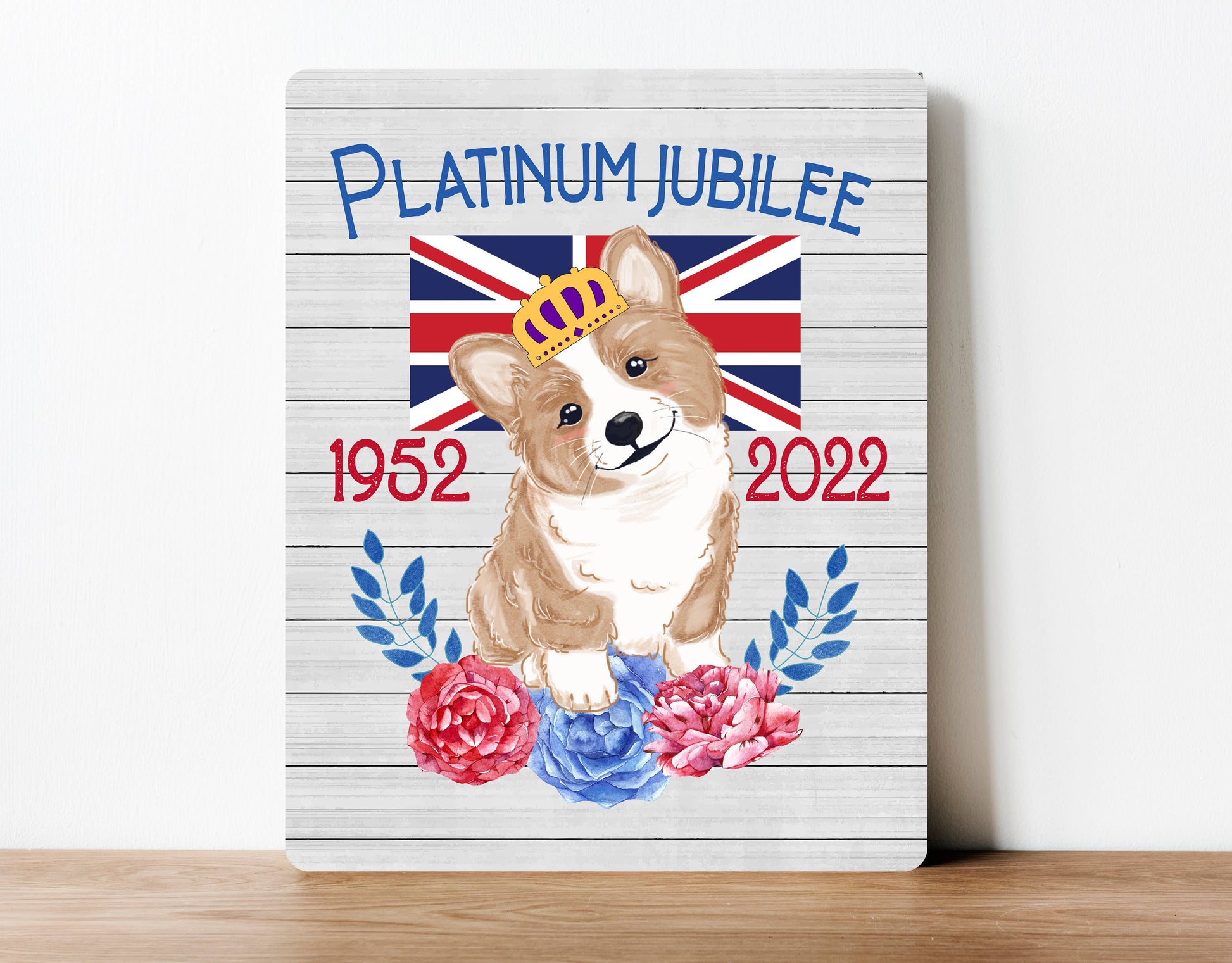 Platinum Jubilee Queen Elizabeth Corgi Dog Metal Sign Plaque